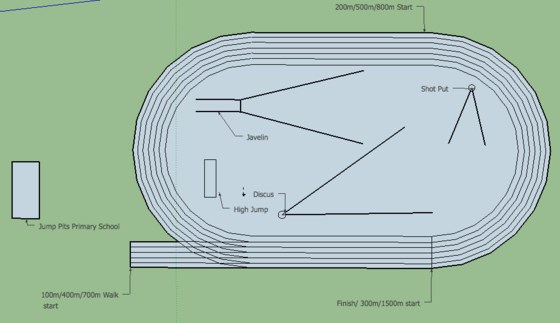 Field line marking setup busy bee.  People required for assistance clearing jump pits and setting up line marking of the track and throw sectors